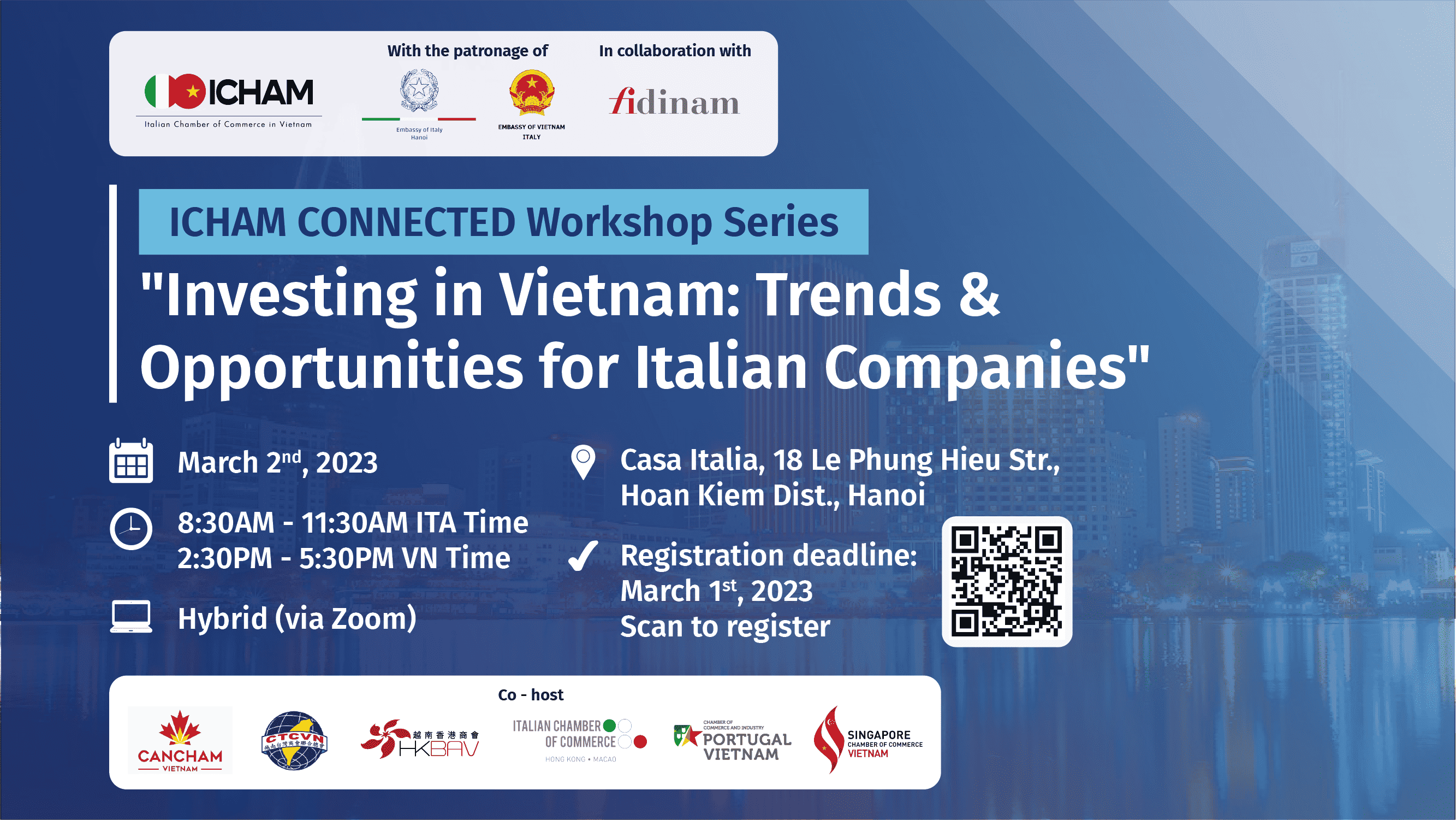 Join us for the seminar "Investing in Vietnam: Trends & Opportunities for Italian companies" on March 2nd! This hybrid event will be held in-person at Casa Italia in Hanoi, and is accessible via Zoom.
